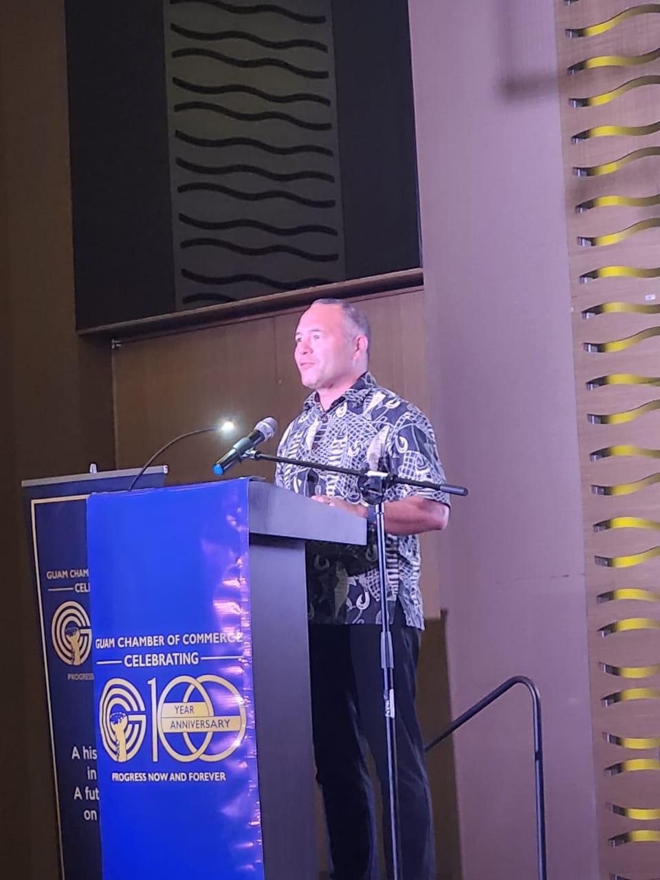 Michael Limtiaco, vice president of Pacific Unlimited, speaks during the Guam Chamber of Commerce’s 2026 Economic Outlook Forum at Dusit Thani Guam Resort.