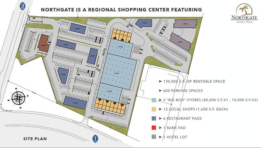 Plans of Northgate Market Place, a shopping center planned for Dededo, were provided by Journal sources. The planned space includes 130,000 square feet of rental space, 600 parking spots and even space for a hotel and bank.