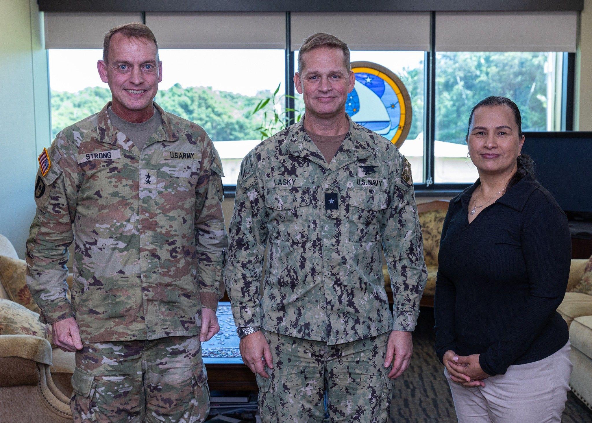 (From left) Major Gen. Craig Strong, Rear Adm. Joshua Lasky and Col. Karin Watson on Feb. 6 U.S. Navy Photo by Rey Rabara